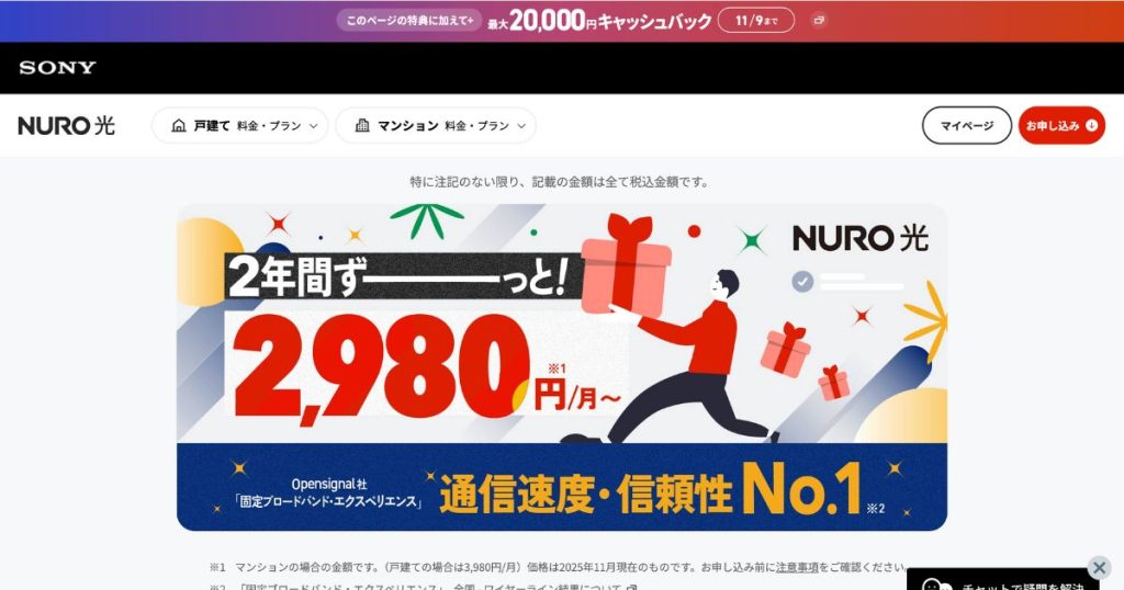 2位:NURO光|独自回線で圧倒的な速度と高額キャッシュバック