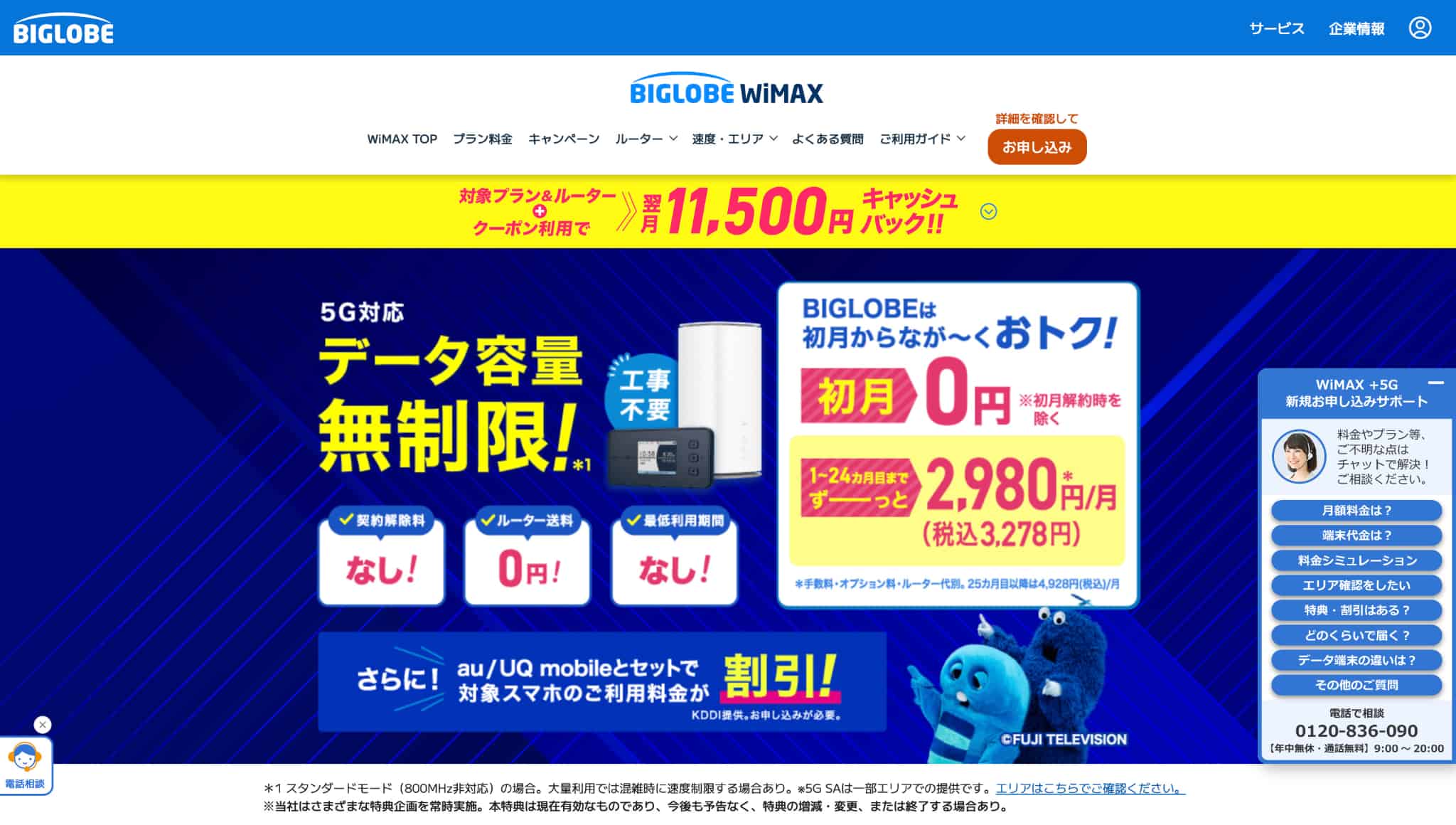• キャッシュバック(11,500円)など特典も用意されている(条件あり)。
