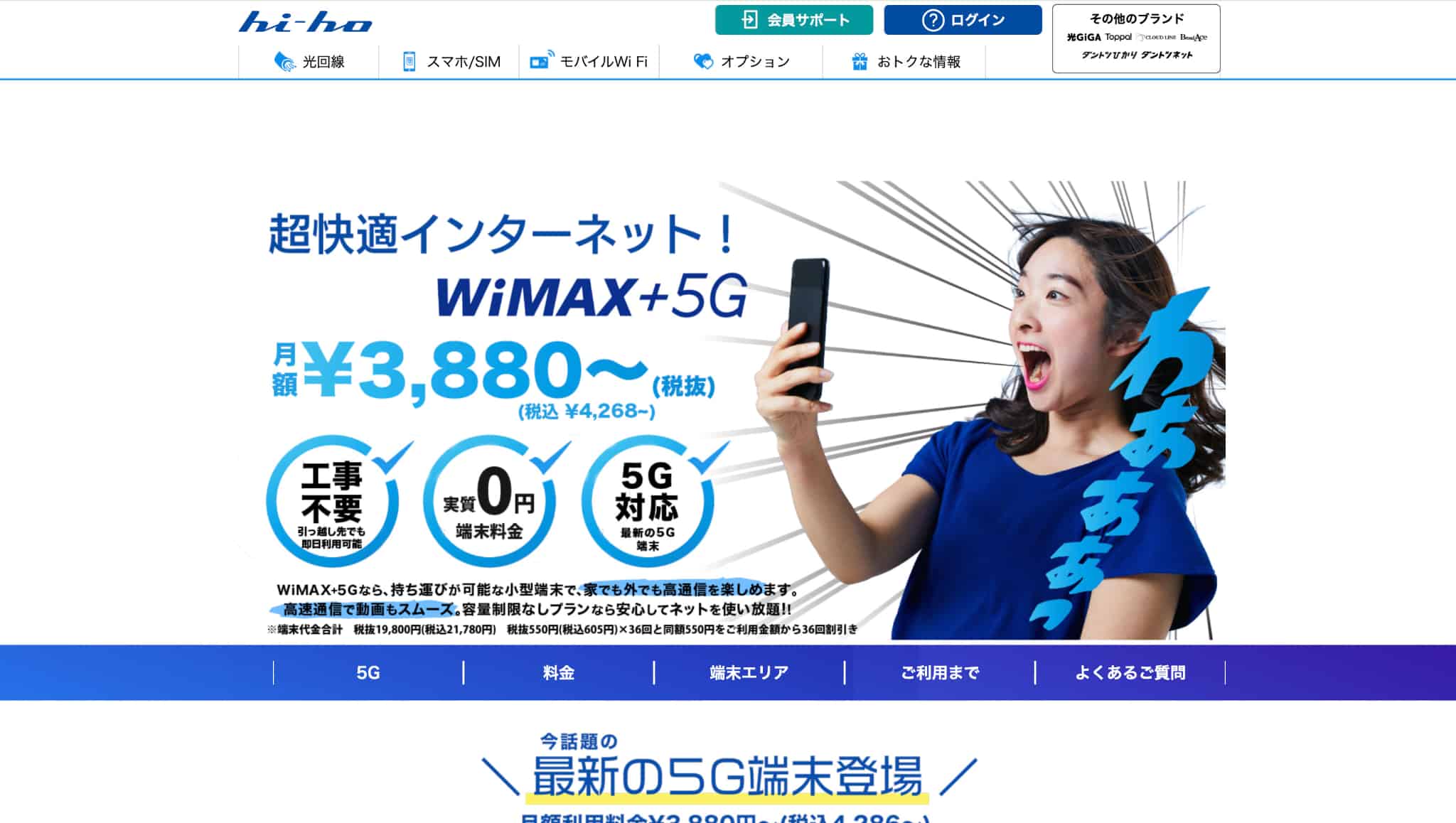 hi-ho WiMAX オンラインで完結しやすい/月額割引がある/手続きがシンプル 4,268円〜